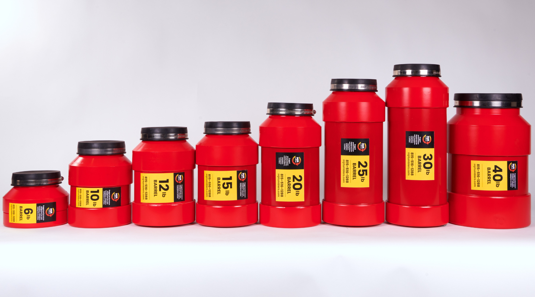 One Base Unit. Tumbling Barrel. Stainless Steel Pins. 5 pounds steel pins for the 15pound barrel and 10 pounds steel pins for the 40pound barrel. Instruction Manual for care and usage. Polishing/Tumbling Instructions for multiple applications