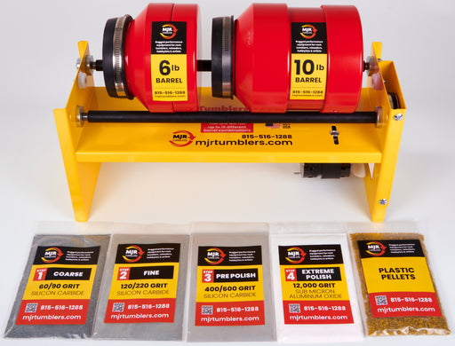 MJR TumblersFour steps of tumbling grit. Step 1: 60/90 Silicon Carbide Step 2: 120/220 Silicon Carbide Step 3: 400/600 Silicon Carbide Step 4: 12,000 White F...